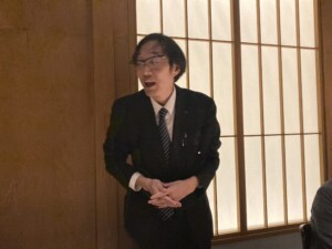 「先日の役員会で恵比木監事が『サラリーマン会員の増加により会員の負担を軽減すべきとの声があるが、良い事業をすれば負担に感じないのではないか』とおっしゃり感銘を受けました。今一度中央会に参加した理由を考え、12月例会について【受ける会員が何を得られるか】という観点から見てほしい。」とご挨拶いただきました。