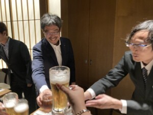 たまたまお隣の席に会員、OB会員がおられたので川口委員長より元気良く乾杯の挨拶がありました🍻