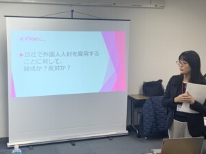 今月はAチームが担当で、「外国人労働者の雇用」について、小林会員から発表いただきました。